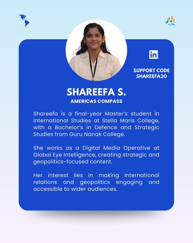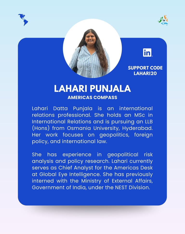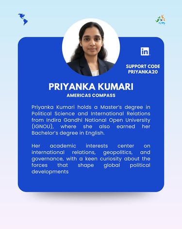 Americas Compass by Global Eye Intelligence delivers fast, sharp, and future-focused intelligence across North, Central, and South America — a region where power plays, industrial shifts, and policy resets can change global markets overnight. We decode U.S. strategy, Latin American political transitions, trade and sanctions dynamics, and the evolution of strategic industries from defence to digital tech. With deep foresight on climate diplomacy, energy security, and investment flows, Americas Compass helps leaders and institutions stay ahead of a hemisphere rapidly rewriting its role in global power.