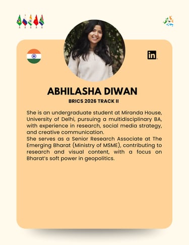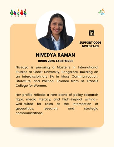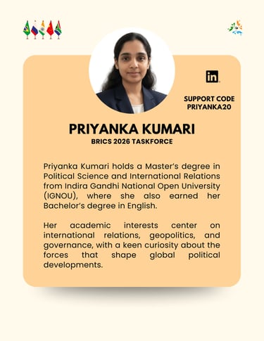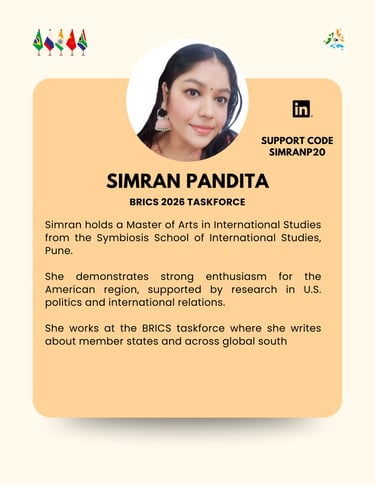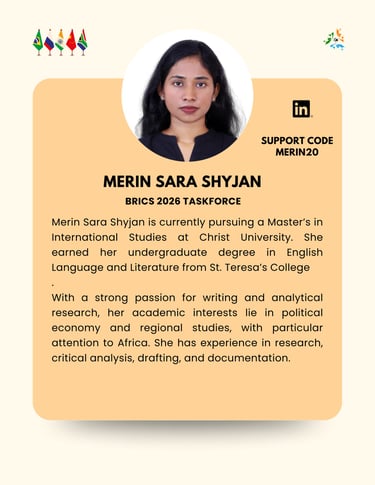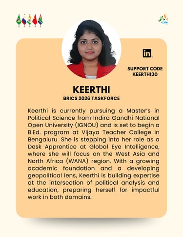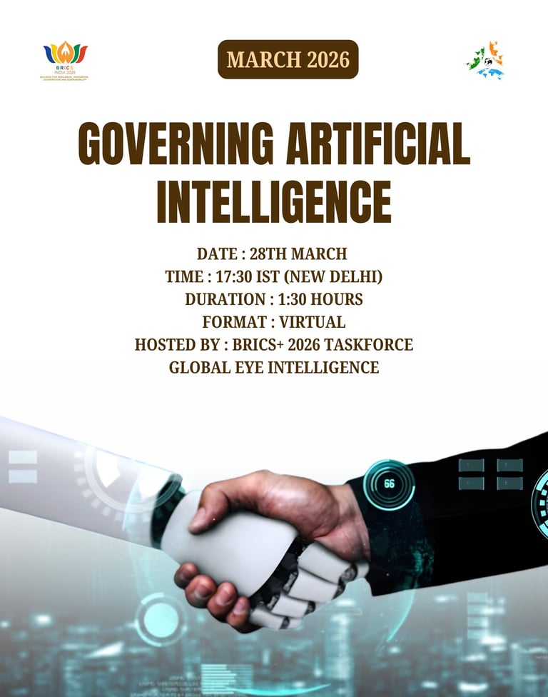 The BRICS+ Taskforce operated by Global Eye Intelligence is an independent research and strategic-analysis initiative. It is not affiliated with, endorsed by, or supported by the Ministry of External Affairs, Government of India, or any governmental authority. All views, outputs, and activities are solely those of Global Eye Intelligence and its contributors, and should not be interpreted as official positions of the Government of India or any other state institution.