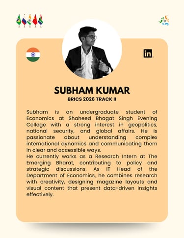 Fragmented trade systems and geopolitical shocks have made supply chains a strategic priority. BRICS cooperation here must be pragmatic, non-escalatory, and implementation-ready.