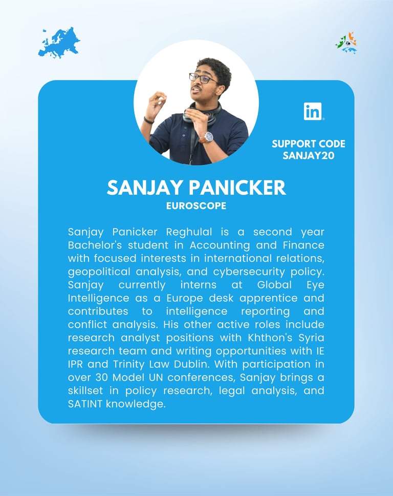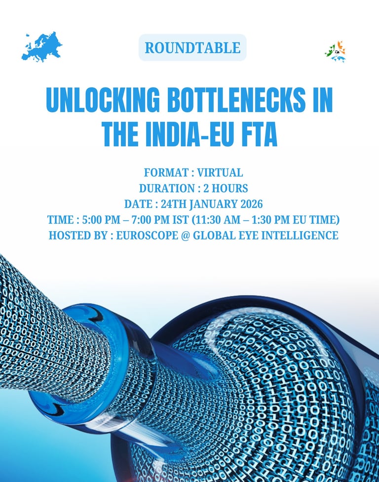 EuroScope by Global Eye Intelligence delivers sharp, fast, and future-ready intelligence on Europe’s shifting geopolitics, policy battles, and strategic industries. We decode EU and NATO dynamics, track defence–energy–digital transitions, and map investment trends shaping the continent’s economic direction. From political risk to transatlantic relations and Europe’s engagement with the Global South, EuroScope helps leaders and institutions navigate a region where policy changes can reshape markets overnight.